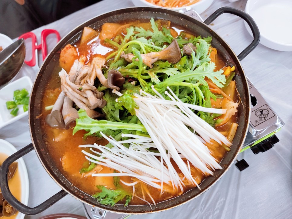 송어튀김까지 배부르게 먹었다면 이제 남은건 딱 하나 송어탕입니다. 송어탕 가격은 대 사이즈 10,000원 소 사이즈 5,000원이었는데 저희는 2인이다보니 사장님께서 알아서 소 사이즈로 가져다 주셨습니다. 5,000원이라는 금액을 먼저 봐서인지 이렇게 푸짐할거라고 예상을 못했는데 푸짐한 양에 한번 놀라고 너무 맛있어서 또 한번 놀랐습니다. 신랑이 수제비를 좋아해서 수제비 사리를 추가할까 생각도 해봤는데 기본으로 들어있는 수제비 양도 어마어마해서 굳이 추가는 하지 않았습니다. 제가 좋아하는 버섯도 가득 들어있었고 송어도 살이 아주 많이 붙어있어서 배부르게 잘 먹었던 것 같습니다. 끓으면 끓을 수록 진해지는 국물맛에 너무 배불렀지만 공기밥을 하나 시켜서 반반씩 싹싹 비워 마무리를 지었습니다.