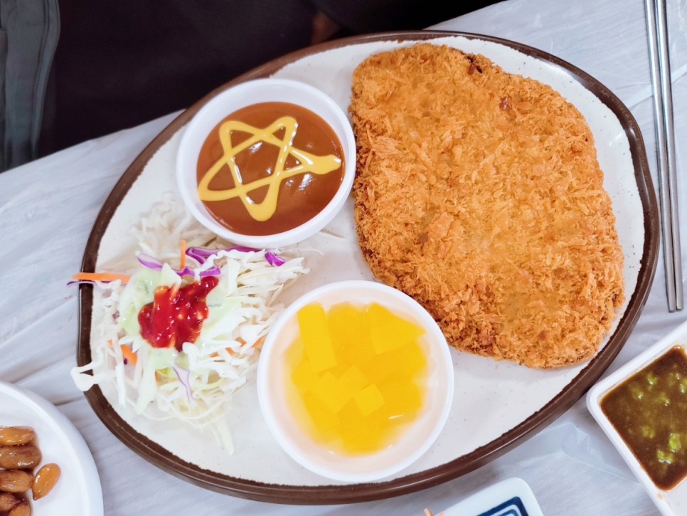 아이 메뉴인 돈가스 비쥬얼도 나쁘지 않죠?! 소스에 별모양 표시로 마감한 사장님의 센스가 돋보이는 플레이팅이었습니다. 저희 아이도 소스보면서 별 모양이라고 좋아했구요, 돈까스 가격은 공기밥 하나가 포함된 금액 8,000원으로 합리적인 가격이었습니다. 돈까스를 썰때 사각사각 거리는 소리도 기분좋게 났구요, 무엇보다 냄새도 안나고 굉장히 맛있었습니다. 맛있으면 엄청 먹고 맛없으면 안먹는 진실의 입을 가진 아이가 저 큰 돈가스와 공기밥 한그릇을 뚝딱 해치웠습니다. 평소에 잘 먹지 않던 단무지도 함께 먹어가며 야무지게 식사를 하더라구요. 하지만 송어튀김이 나오면서 돈가스가 살짝 밀리긴했는데 그래도 송어튀김 한번 먹고 돈가스 한번 먹으면서 다양하게 식사를 즐기던 일곱살 아이였습니다.