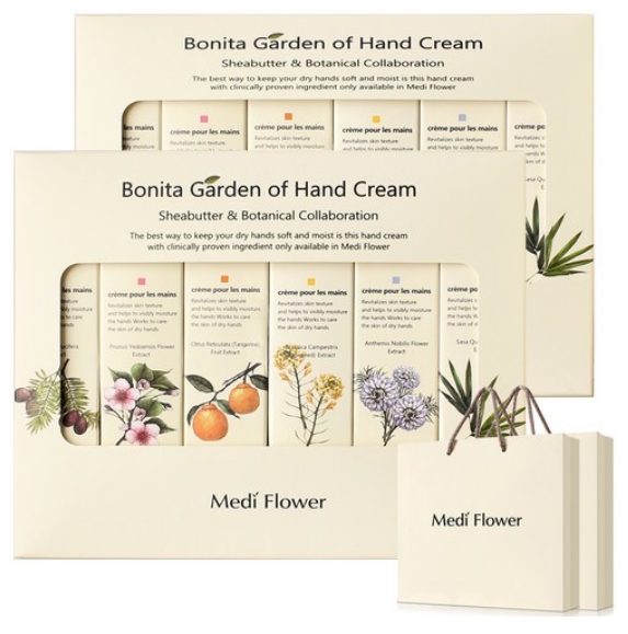 주고 받는 사람의 부담없는 선물 중 하나가 바로 핸드크림인데요, 핸드크림 중에서도 유명한 메디플라워 제품입니다. 일단 패키지가 예쁘고 향도 무난하여 호불호 없는 선물이 될 것 같습니다. 쇼핑백도 함께 들어있어 선물하기 더욱 좋은 제품입니다.
