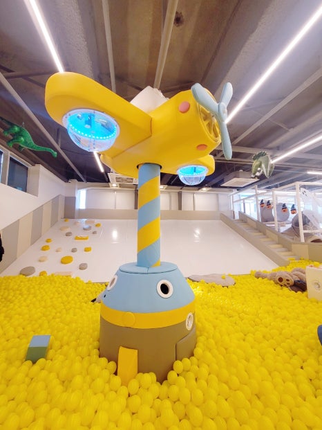 트램펄린 옆에는 노란색 볼풀장도 크게 있어서 뛰어놀다가 바로 다이빙할 수 있어요.