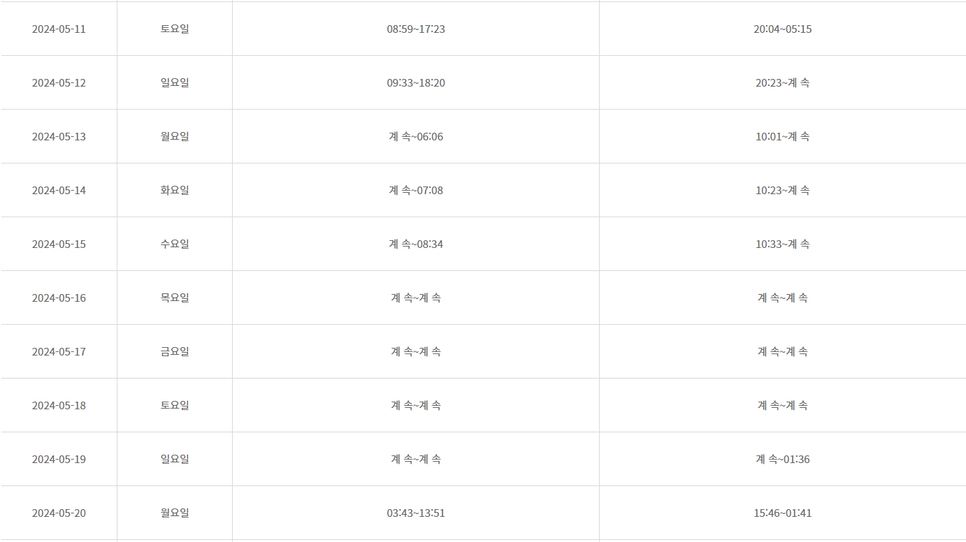 그럼 매일 달라지는 제부도 물때 시간표를 알아보겠습니다.